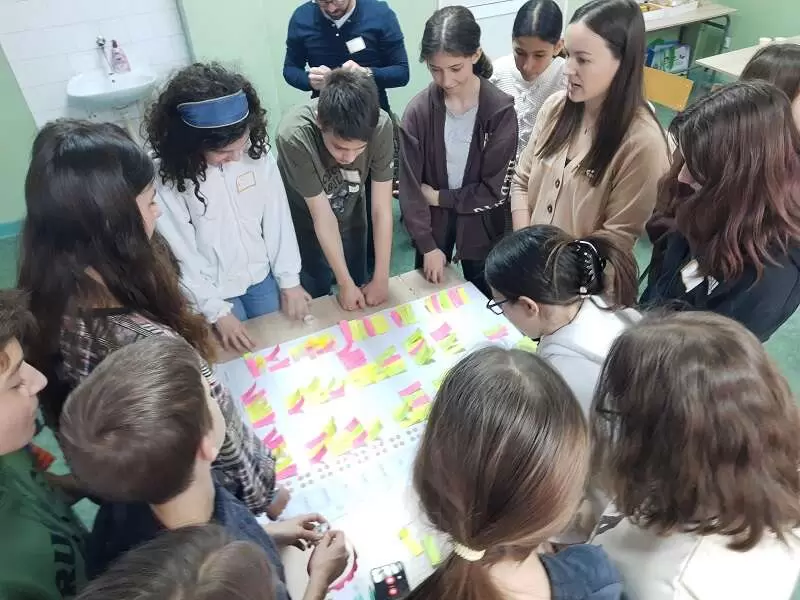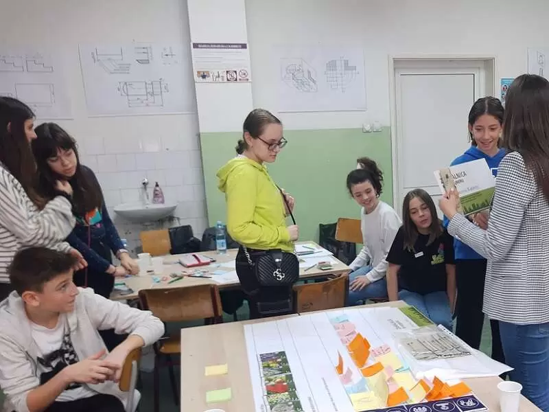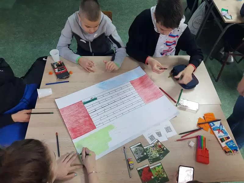 На радионици су учествовали одабрани ученици одељења 6/3, 6/4, 7/2, 7/3 и 8/3, који су поступно анализирали све параметре за постављање вертикалне баште у школи, као што су биодиверзитет, осунчаност, бука, здравље, топлотни комфор, задржавање воде, уштеда енергије и воде, очување фасаде, естетика простора, безбедност, материјали, конструкција, инклузија, да би на крају била изабрана најповољнија локација, као и врсте биљака за реализацију пројекта.