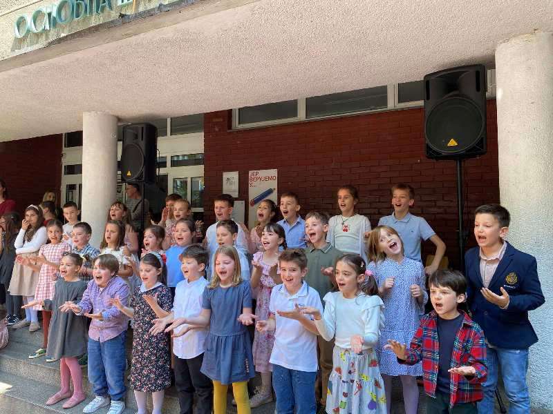 У уторак је организовано одељењско певање на главном улазу у школу. Певало се гласно и поносно, а најдивнија публика је подржавала и бодрила. Пуни енергије и лепог расположења ђаци су показали свој таленат и труд и измамили осмехе свих пролазника Косовске улице.