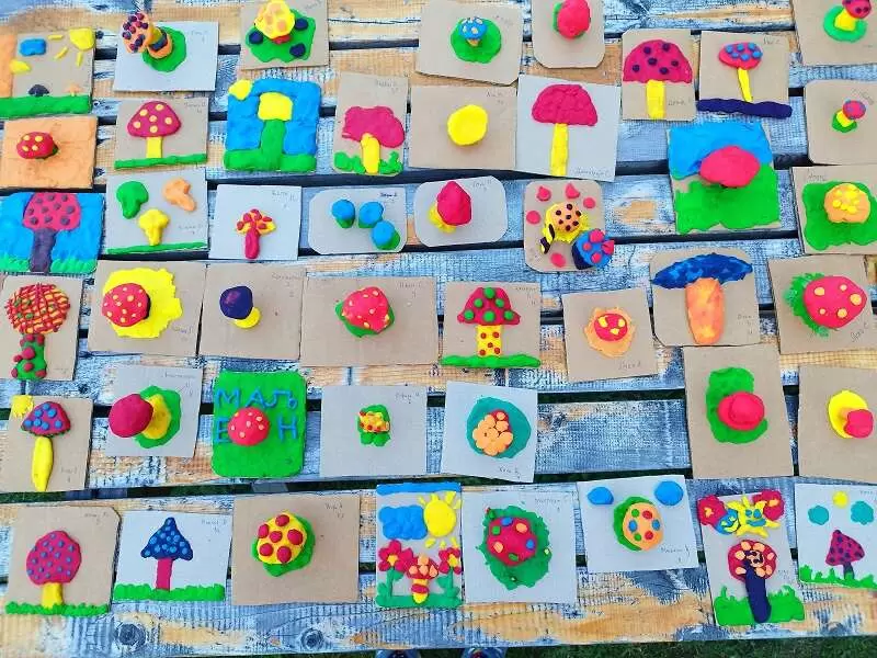 Након прича и игара, на ред је дошао креативни део – правили смо скулптурце и рељефне слике у облику печурака. Торта печурка од плазме и крема нестала је готово тренутно, показујући да је уметност укусна.