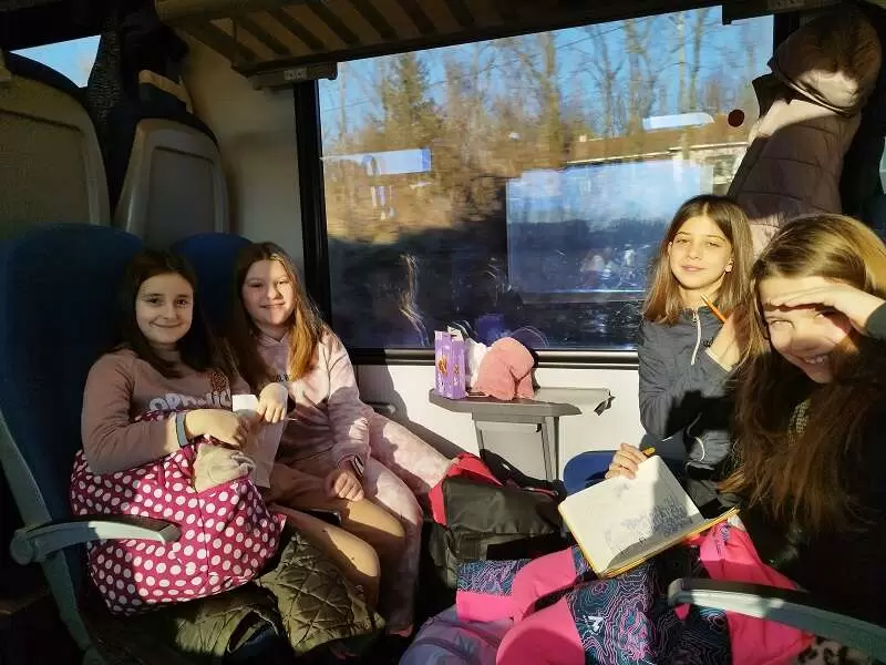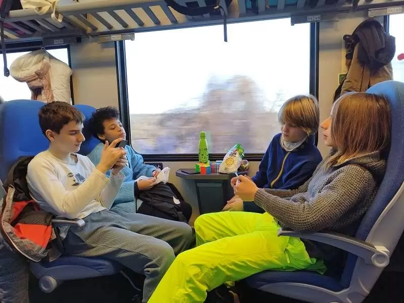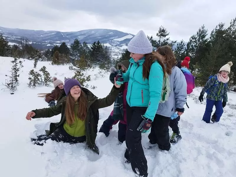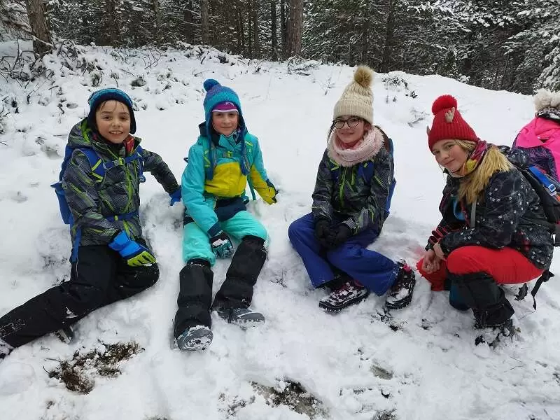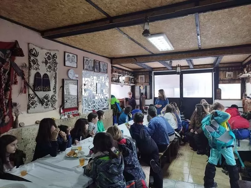 Радовали смо се веома овом путовању, маштали о снегу и имали среће да је претходног дана нападао и прекрио брда иза Косјерића и то баш онако лепо као на уметничким сликама. У Београду га није било па је нестварно било видети крајеве који се беле. Воз је као и обично био идеалан за прве снимке највеселијих и најпоспанијих учесника акције. Сви смо једва чекали да навалимо на врућу гибаницу и кифлице у домаћинству Стојанић. Зимска авантура је почела већ на изласку из воза па грудвању и ваљању није било краја. У снежно белој Ражани дочекао нас је Зорко Стојанић, чију смо воденицу на језеру прво обишли. Воденични точак је неуморно млео пшеницу док је пар враголана ломило лед на залеђеном језеру. По завршетку доручка смо кренули ка Брајковића ридовима. Шумска стаза у којој доминирају четинари је доприносила општем утиску проласка кроз предео из бајки. Тешко је било одолети жељи да се бациш у дубок снег или скотрљаш низ неку ливаду. Такви су нам и снимци. Они који су мислили да снега неће бити па кренули без одговарајуће опреме, окупирали су пећ на дрва по повратку на ручак. Делили смо резервне чарапе, ципеле, тренерке јер је било важно да сви буду суви. Уз домаће колаче је било слађе учествовати у две радионице – једну у којој смо правили органске хранилице за птице и другу где смо учили о слепим мишевима и правили их оригами техником. Поздравили смо се са домаћином и упутили ка станици качећи хранилице на дрвеће успут. Била је то још једна веома лепа и успешна акција које ћемо се радо присећати.