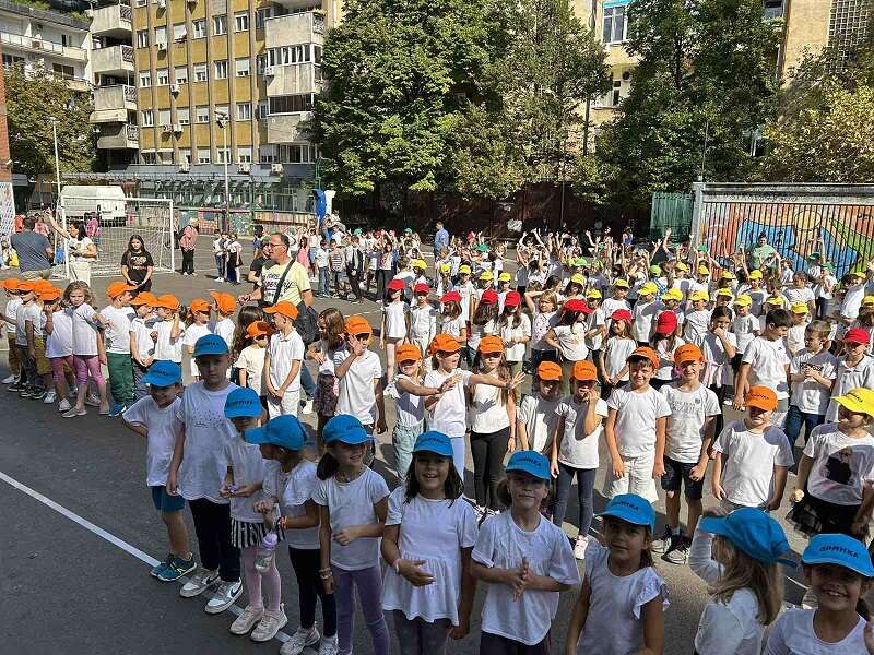 Наша школа је 29.9.2023. године, у школском дворишту организовала заједнички час физичког и здравственог васпитања за све ученике млађих разреда. Око 400 ученика је пратило ритам музике и покрета са својим наставницима. (кратак видео запис је на линку)