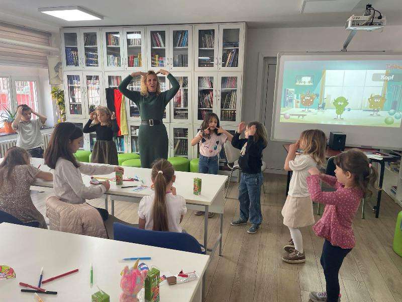 Са наставницом немачког језика научили су прве речи језика који ће учити наредних осам година у нашој школи.