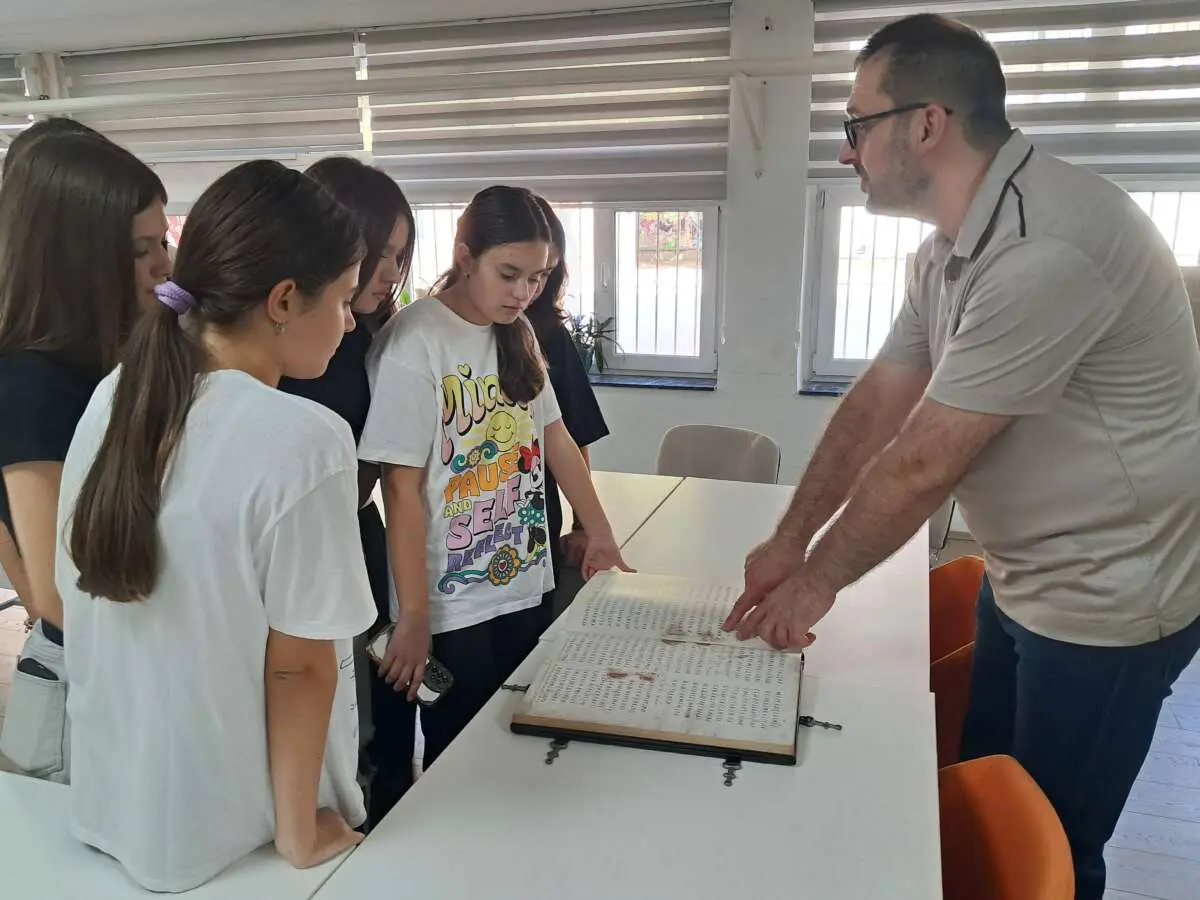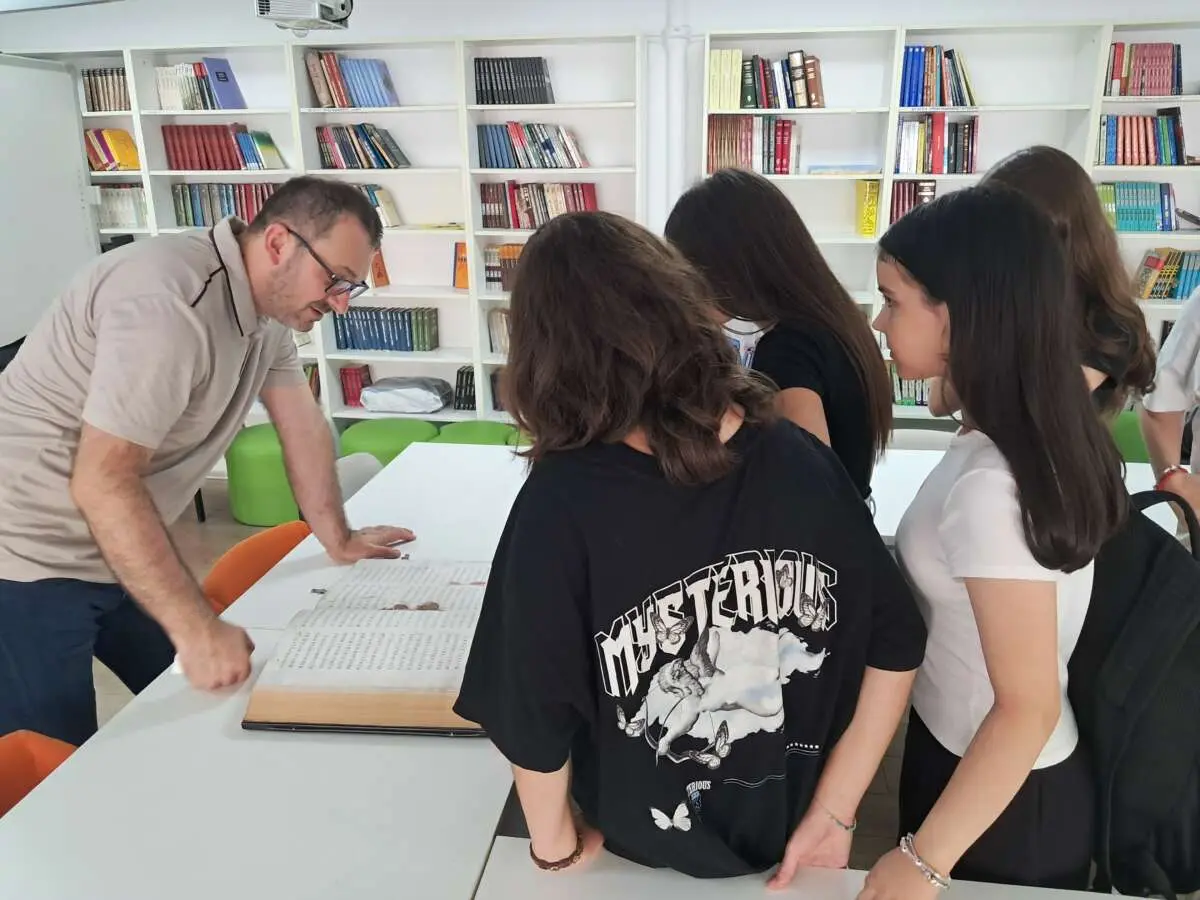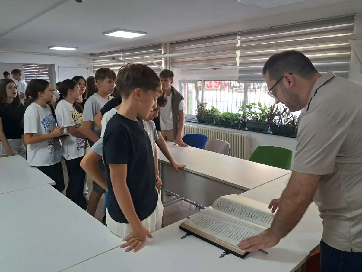 Захваљујући љубазности др Зорана Недељковића, управника Патријаршијске библиотеке, као и ангажовањем Јола Булатовића, наставника српског језика и књижевности, наши осмаци су јуче, 24. септембра, могли да погледају и прелистају фототипско издање Мирослављевог јеванђеља, најстарије српске ћирилске рукописне књиге на српскословенском језику, из 12. века.