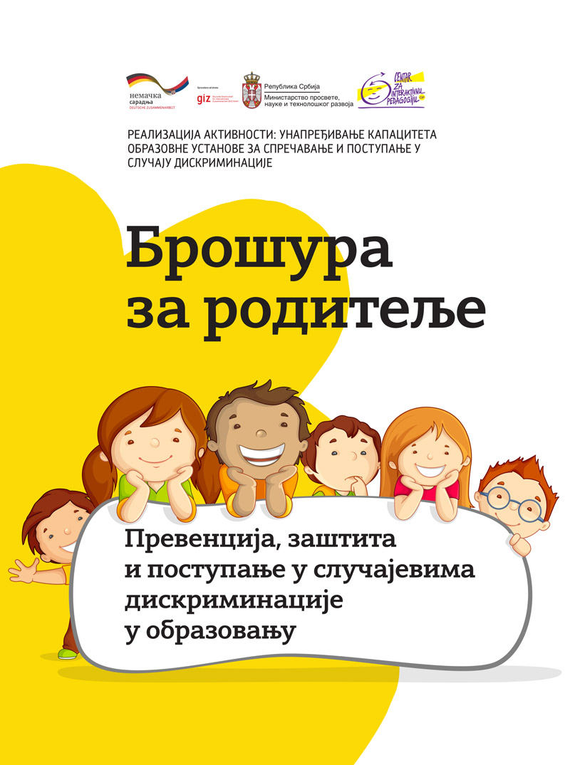Водич је настао у оквиру пројекта Немачке развојне сарадње „Инклузија Рома и других маргинализованих група у Србији“, који спроводи Deutsche Gesellschaft fur Internationale Zusammenarbeit (GIZ) GmbH, а реализује ЦИП – Центар за интерактивну педагогију у сарадњи са Министарством просвете, науке и технолошког развоја. Брошура је намењена родитељима, законским заступницима, члановима породица и свима онима који желе да препознају дискриминацију ако се некада појављује у различитим ситуацијама у вртићу и школи, у другим институцијама, на радном месту, у јавном превозу и др.