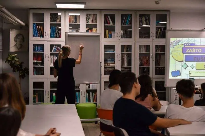 У школској библиотеци одржана су два предавања 18.9.2025. године за ученике 8/1 и 8/2, а 24.9.2025. године за све ученике 8/3 и 8/4. Стела и Леда су биле одлични предавачи, а осмаци одлични сарадници. Циљ ових радионица је оснаживање младих да критички мисле и доносе одлуке које су добре за њих. Едукација је кључна за здравију будућност.
