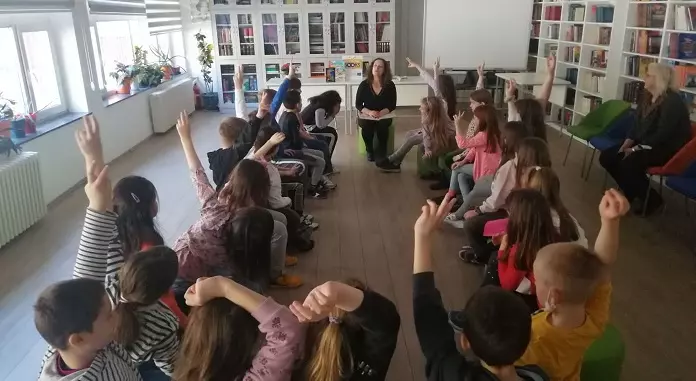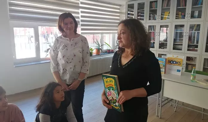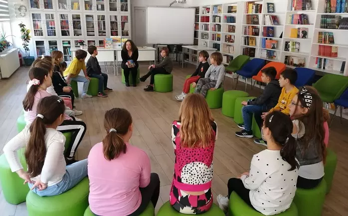 Гошћа наше библиотеке била је Тања Лебовић из издавачке куће ProPolis Books у уторак, 5.4.2022. године. Одржала је две веома успешне промоције књига за ученике 2/1 и 2/2. Ученицима 2/1 представила је књигу „Кућа од медењака“, која нуди више могућности читања помоћу упутстава читаоцу које може да одабере на одређеним страницама књиге. Ученици су учествовали у разговору, износили своје идеје, замишљали шуму ликове и догађаје. Учитељице Дијана Хорватић и Ирини Котронис Пановски похвалиле су и ученике и предивну Тању Лебовић која их је сјаjно водила кроз читалачку авантуру.
