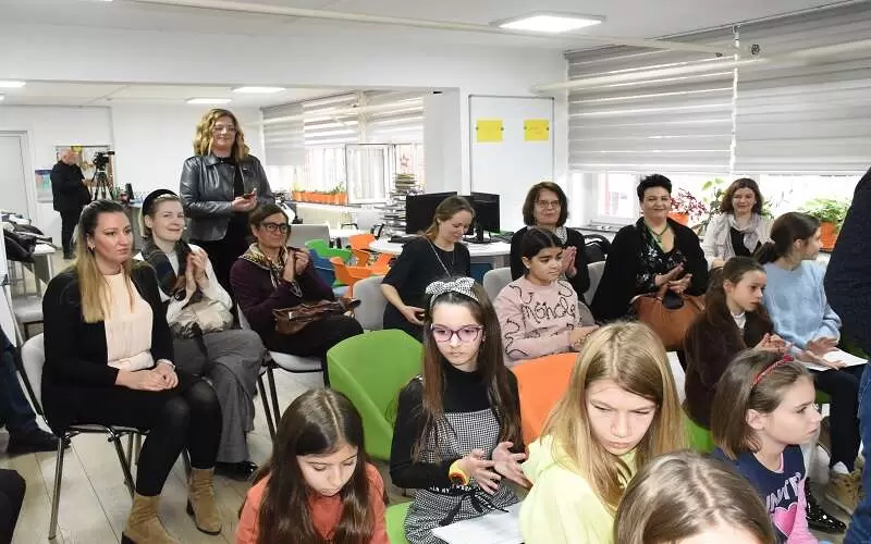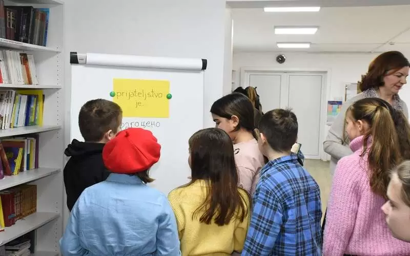 Потом су ученици обе школе на три језика маркерима на табли, написали шта је пријатељство и фотографисали се са гостима. По завршетку програма, дружили су се и боље упознали.
