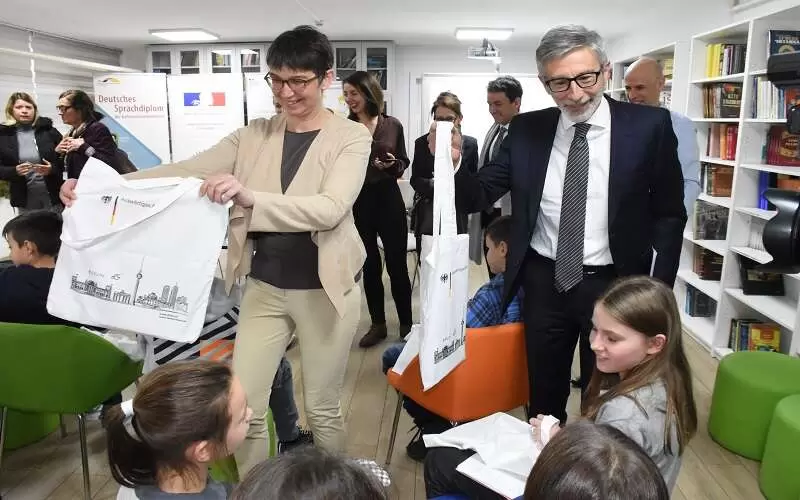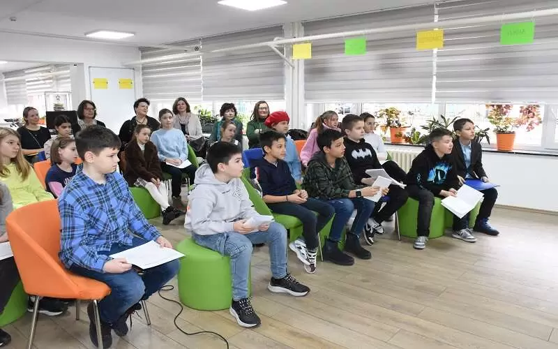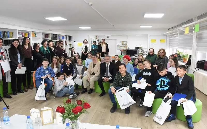 У библиотеци наше школе, 24.1.2023. године, одржан је сусрет амбасадора Немачке и Француске са ученицима Огледне основне школе „Владислав Рибникарˮ и Основне школе „Дринка Павловићˮ.