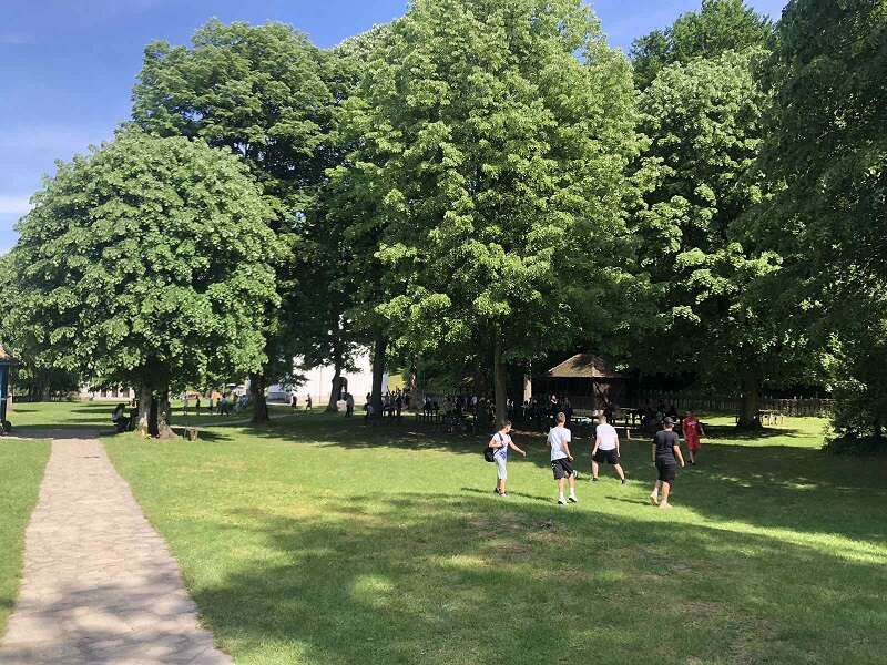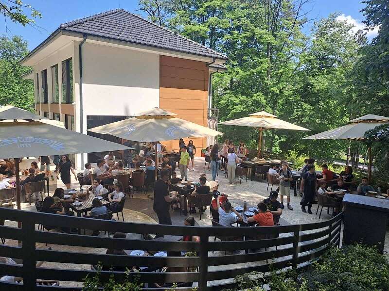 У 13 часова ручали смо у прелепом ресторану „Здрављак“, окруженом парковима, шумом и теренима за фудбал и кошарку, па су деца искористила време после ручка за игру у природи.