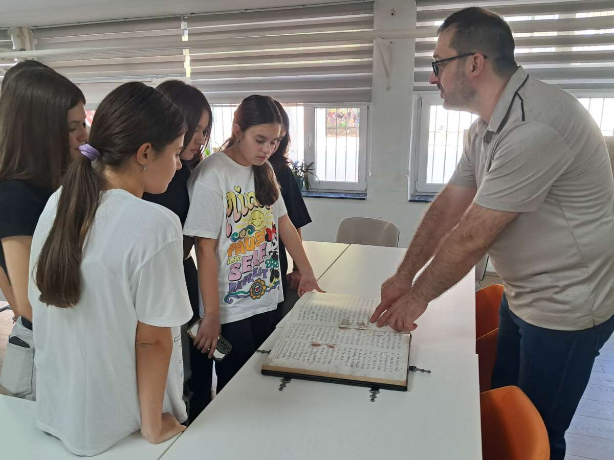 Захваљујући љубазности др Зорана Недељковића, управника Патријаршијске библиотеке, као и ангажовањем Јола Булатовића, наставника српског језика и књижевности, наши осмаци су јуче, 24. септембра, могли  да погледају и прелистају фототипско издање Мирослављевог јеванђеља, најстарије српске ћирилске рукописне књиге на српскословенском језику, из 12. века.
