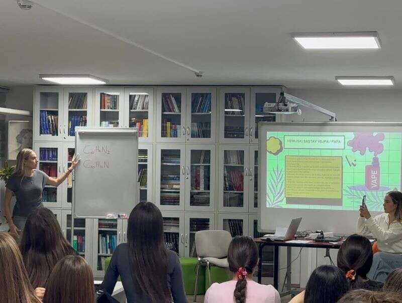 У школској библиотеци одржана су два предавања 18.9.2025. године за ученике 8/1 и 8/2, а 24.9.2025. године за све ученике 8/3 и 8/4. Стела и Леда су биле одлични предавачи, а осмаци одлични сарадници. Циљ ових радионица је оснаживање младих да критички мисле и доносе одлуке које су добре за њих. Едукација је кључна за здравију будућност.